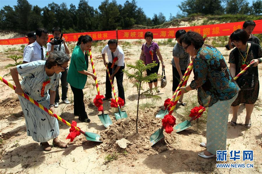 在福建晋江举办的首届海峡两岸返亲节上,来自两岸的民众共同培植“姐妹林”(资料照片)。新华社发(徐维耕 摄)