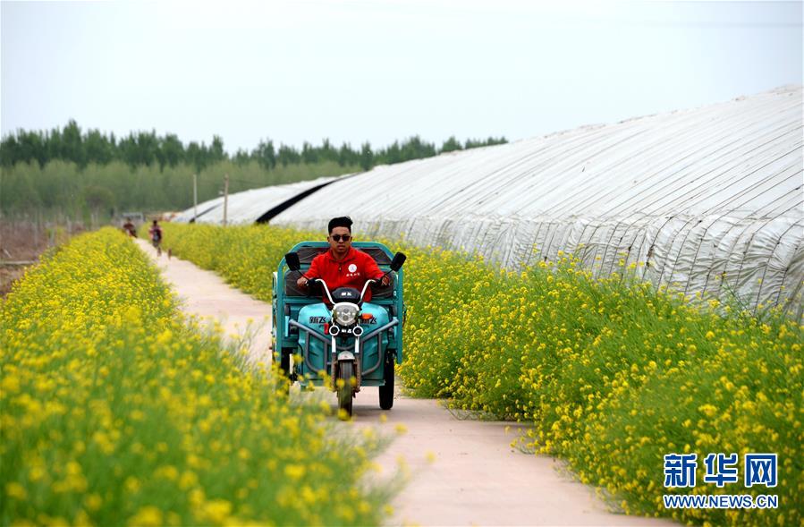 4月19日,河北曲周县德众科技小院的学生驾驶三轮车下田地。 新华社记者 王晓 摄