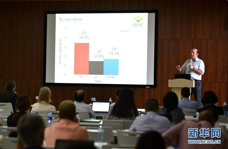 5月29日,在中国农业大学曲周实验站,英国学者在中英合作项目研讨会上发言。新华社记者 王晓 摄