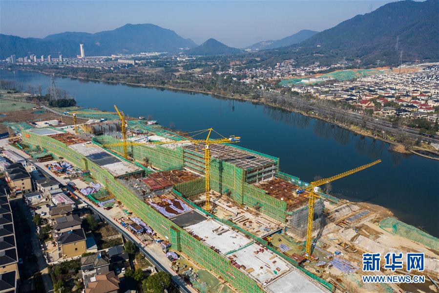 2月22日,中铁四局施工人员在绍兴市329国道智慧快速路项目工地上作业(无人机照片)。绍兴市329智慧快速路是2022年杭州亚运会及浙江省“六横八纵”智慧快速路交通系统的重点配套工程。 新华社记者 黄宗治 摄