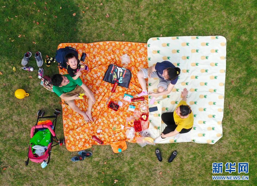 5月4日,市民在广州发展公园休闲(无人机照片)。 新华社记者 刘大伟 摄