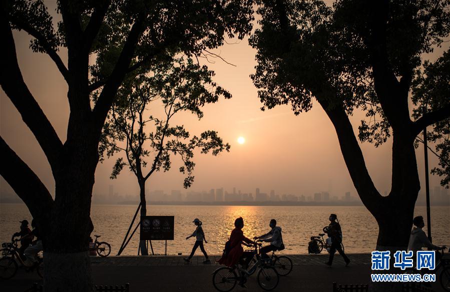 5月5日,人们在武汉东湖绿道游玩。 新华社记者 肖艺九 摄