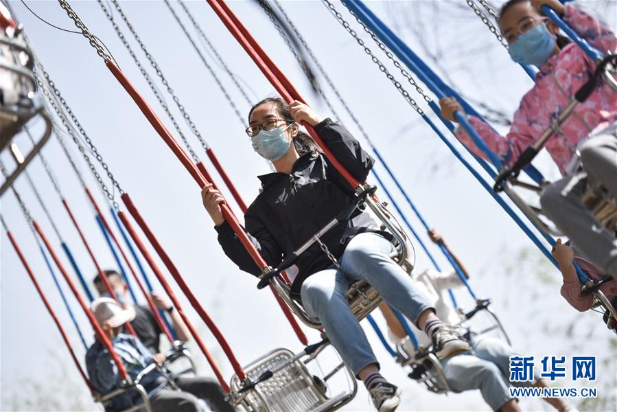 5月5日,人们在西宁市人民公园内游玩。 新华社记者 吴刚 摄
