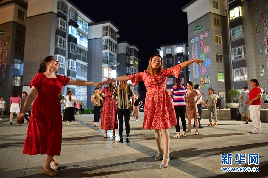 夜幕降临,热闹的广场舞在社区里跳起。陈兴松动作略显笨拙,但扭得格外酣畅。