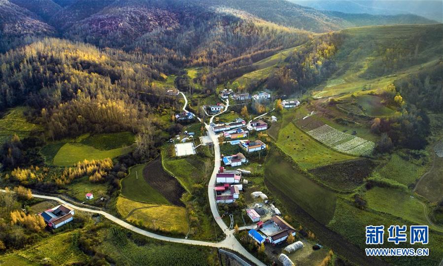 这是2018年10月16日拍摄的康乐县八松乡纳沟村景色(无人机照片)。新华社发(马吉祥 摄)
