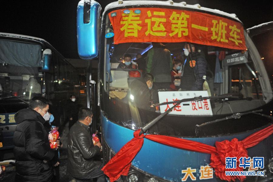 1月28日,乘客在大连交运集团汽车客运总站登上大巴车返乡。新华社发(刘德斌 摄)