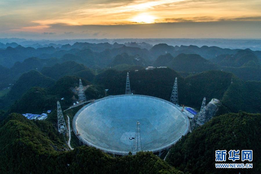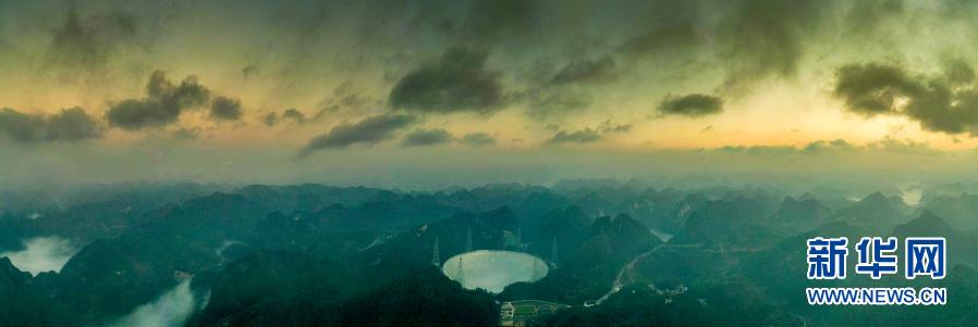 清晨,贵州平塘大窝凼。望远镜偌大的反射面从茫茫宇宙中抓取的射电信号数据,正源源不断传输到一百多公里之外的贵阳天文大数据基地。