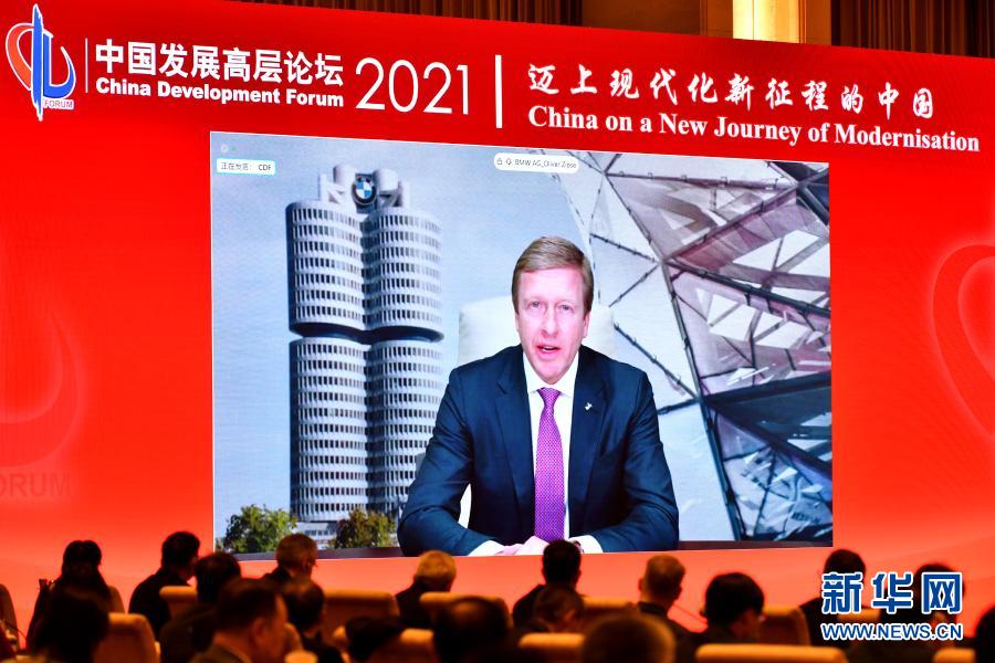 3月21日,论坛外方主席、宝马集团董事长齐普策在论坛上致辞。新华社记者 李鑫 摄