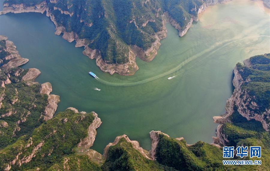 这是9月12日在河南济源拍摄的“黄河三峡”景色(无人机照片)。新华社记者 郝源 摄