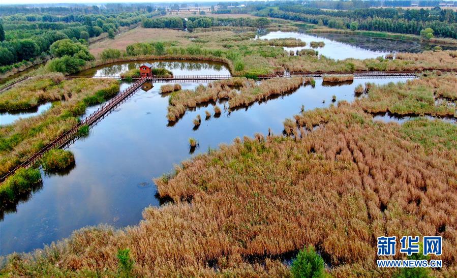 这是9月19日在河南省新乡市封丘县拍摄的陈桥东湖湿地一景(无人机照片)。新华社记者 郝源 摄