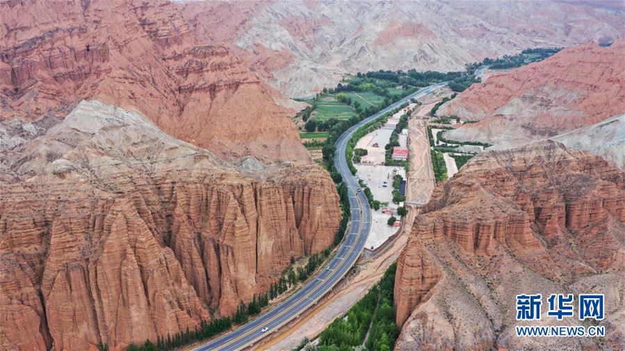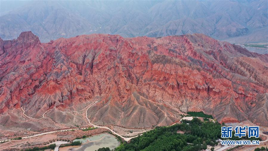 这是6月16日拍摄的位于青海省海南藏族自治州贵德县境内的丹霞地貌(无人机照片)。新华社记者 吴刚 摄